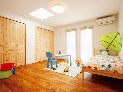 建具はレッドパインの無垢材を採用。