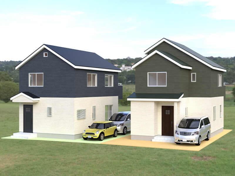 | 土地面積 | No.1:102.30㎡(30.95坪)、No.2:102.35㎡(30.96坪) | 延床面積 | No.1:81.80㎡(24.74坪)、No.2:80.97㎡(24.50坪) |